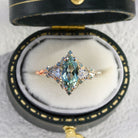 Unique floral engagement rings Rose Three Stone Marquise Lab Green Sapphire and Moissanite Ring