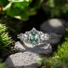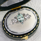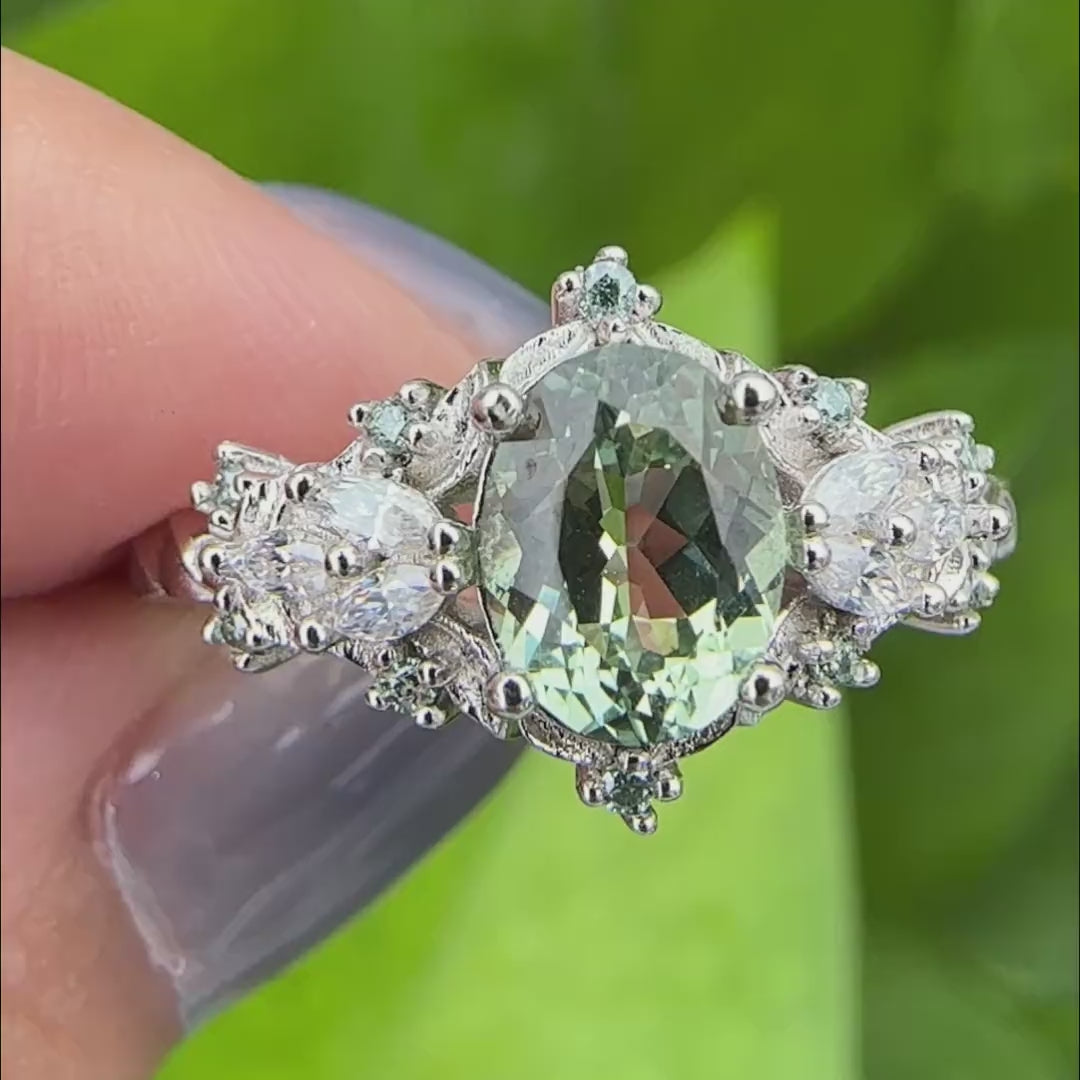 Unique Starlight Oval Green Sapphire Engagement Ring