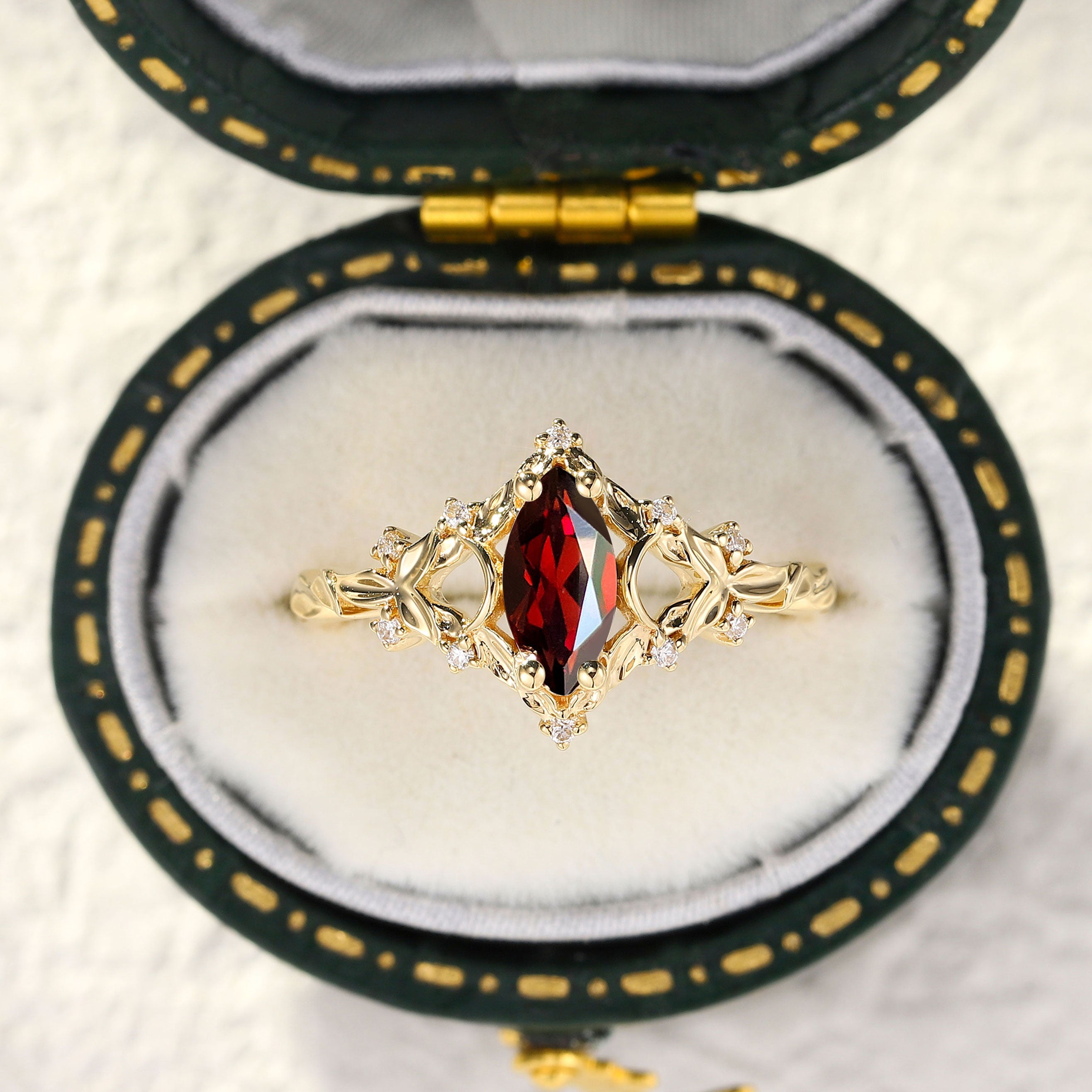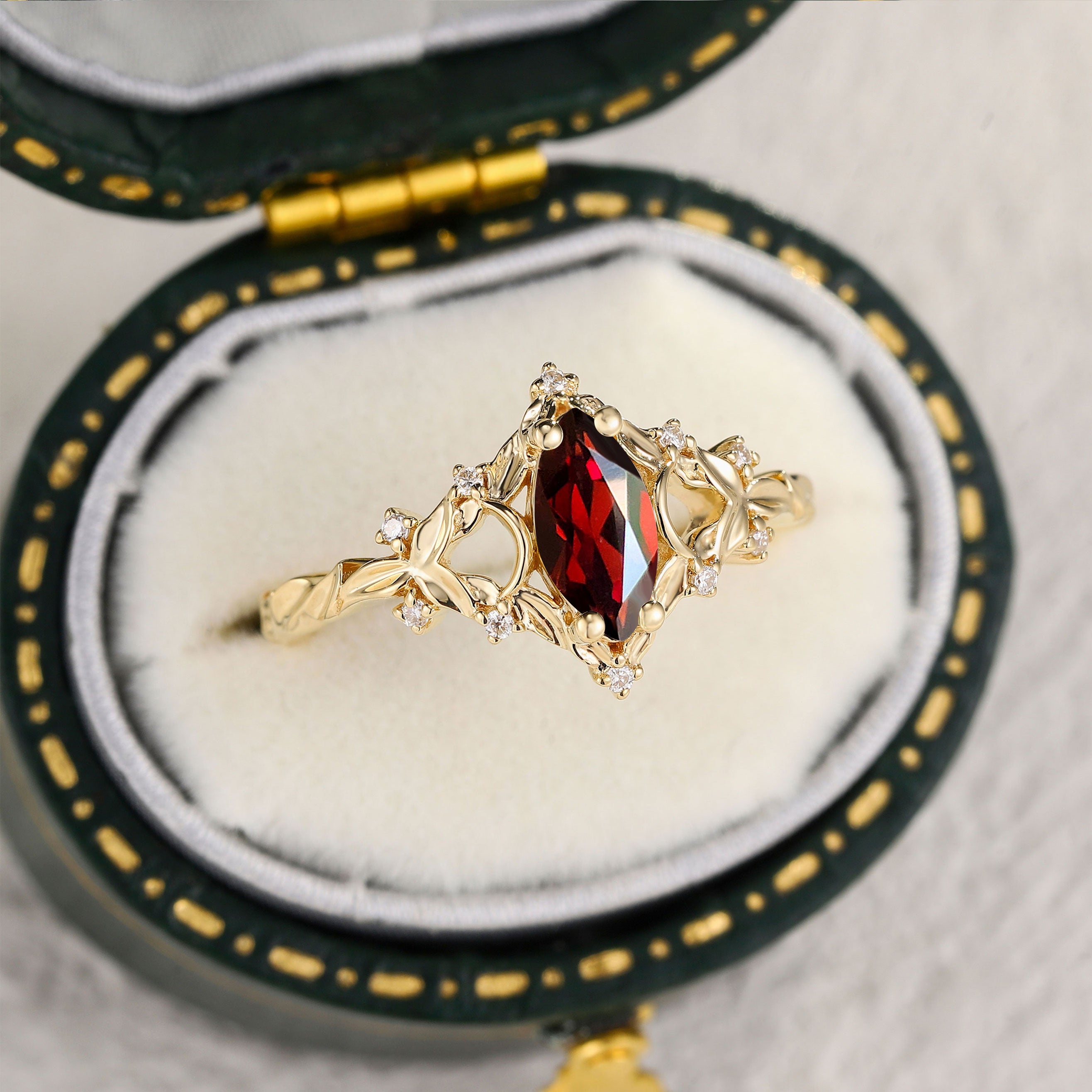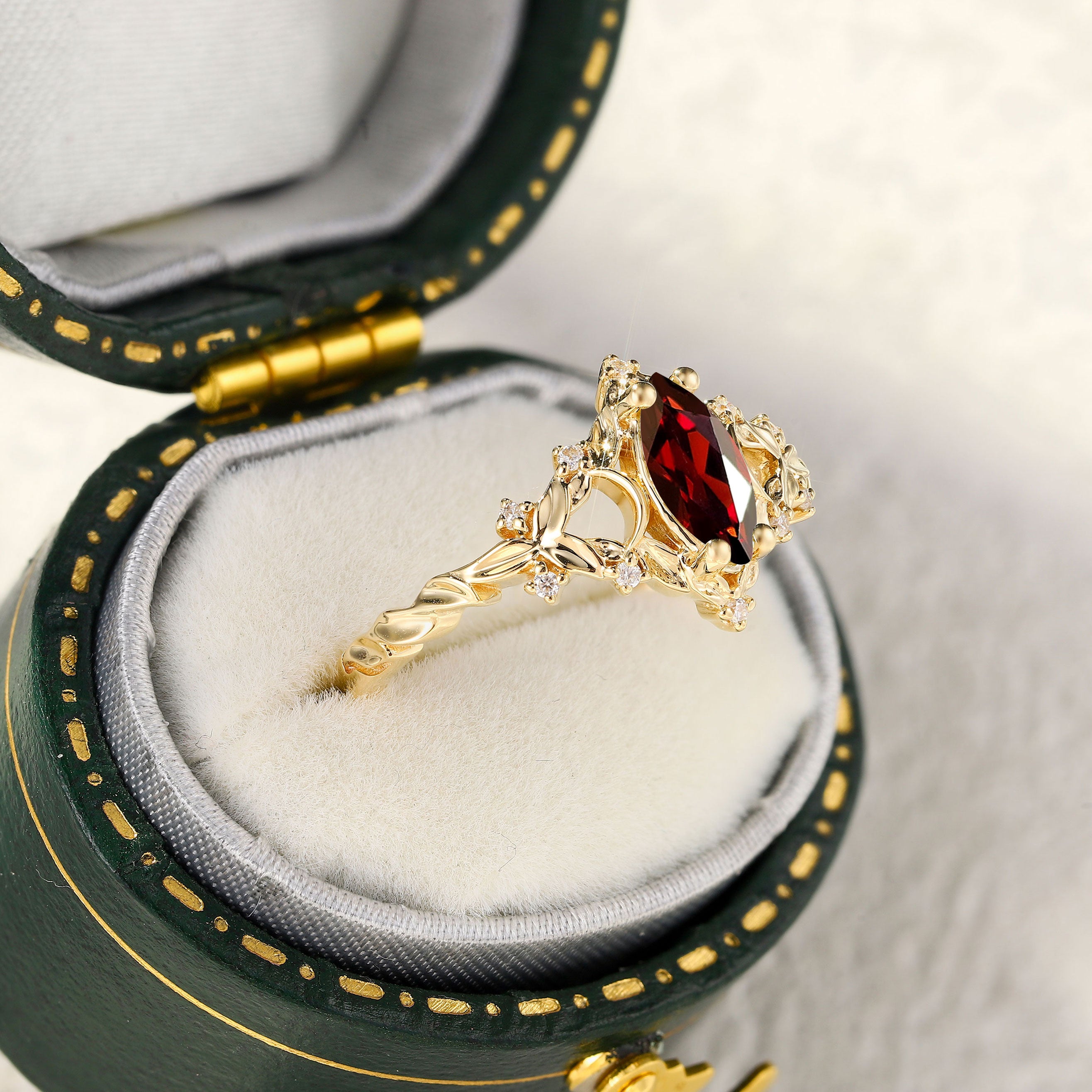 Unique Briar Moon Marquise Garnet Ring