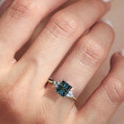 Unique Emerald cut Lab Sapphire Cluster Engagement Ring