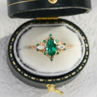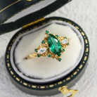 Ready to ship,Size 6,14k yellow gold,Unique Briar Moon Three Stone Marquise Lab Emerald Ring