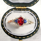 Unique Briar Rose Oval Garnet and Lab Sapphire Ring