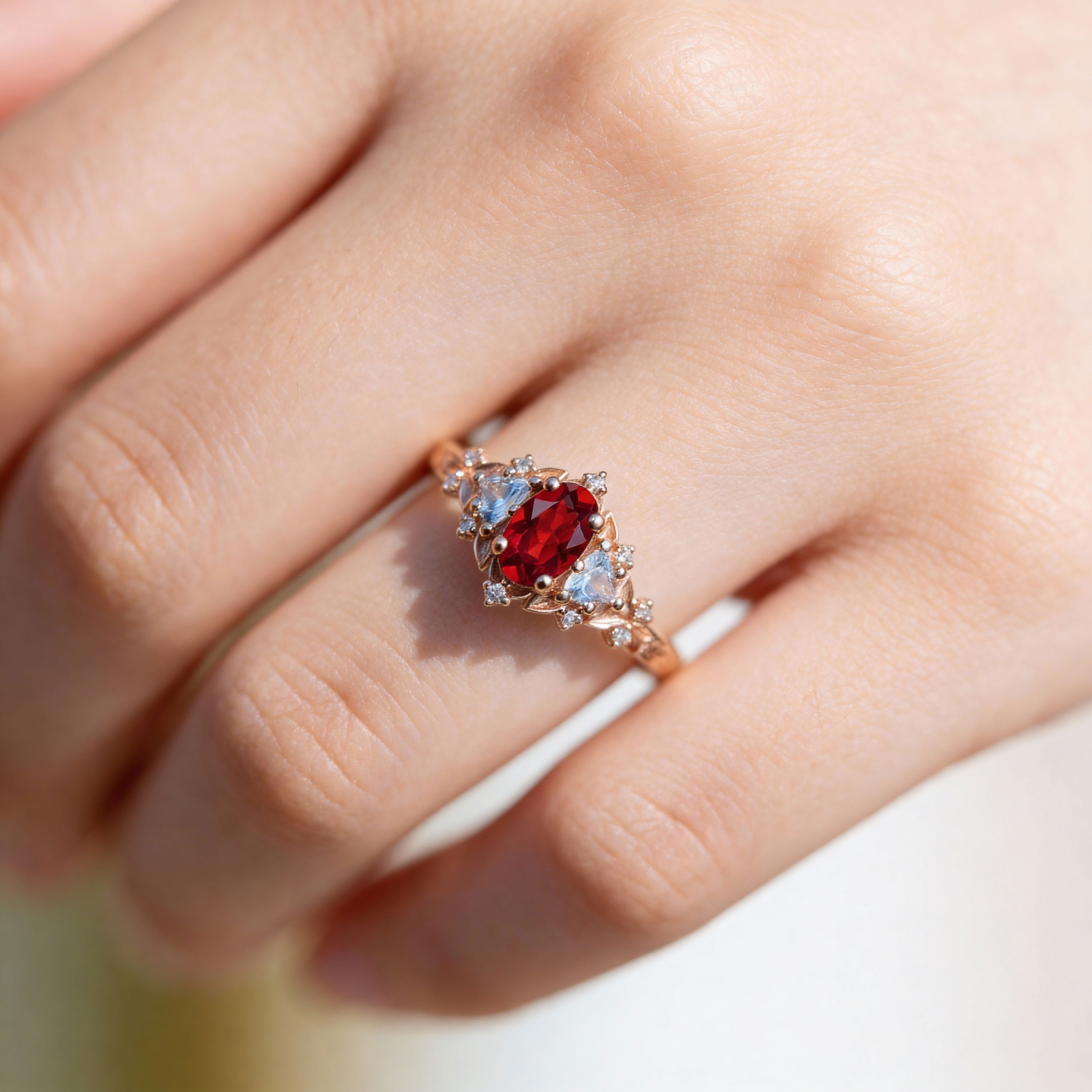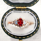 Unique Briar Rose Oval Garnet and Moissanite Ring