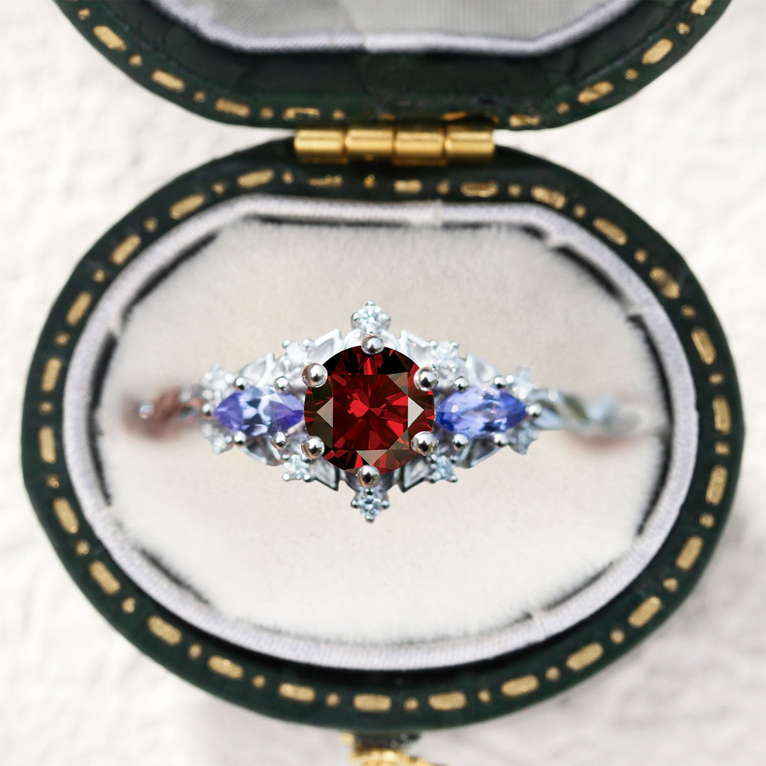 ♡ Center stone: Garnet