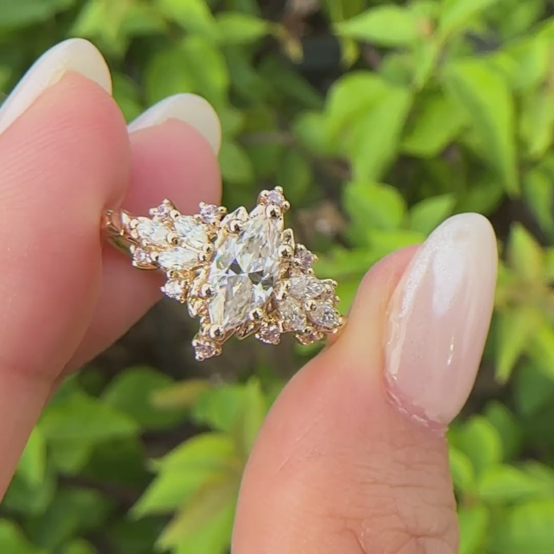 Unique Briar Rose Starlight Marquise Moissanite and Pink Sapphire Ring