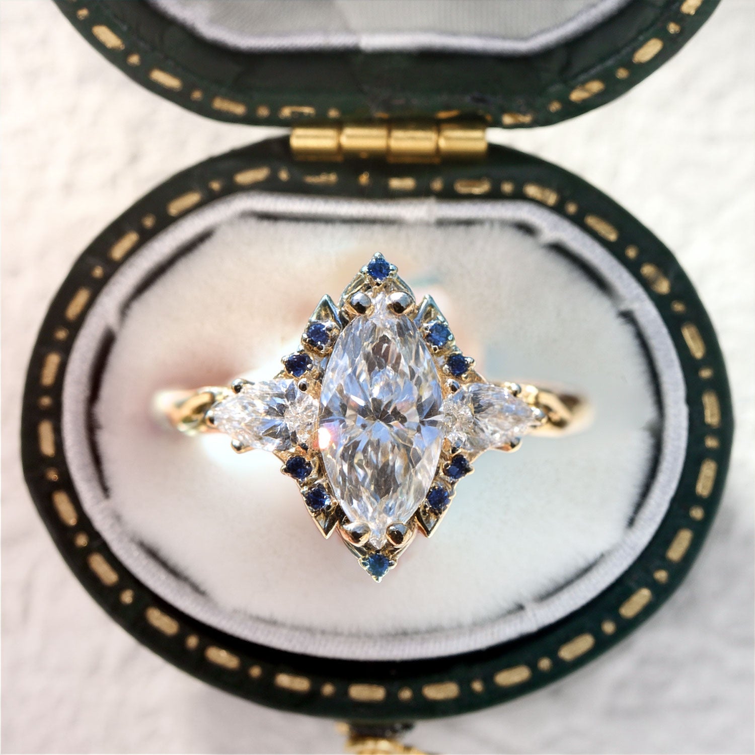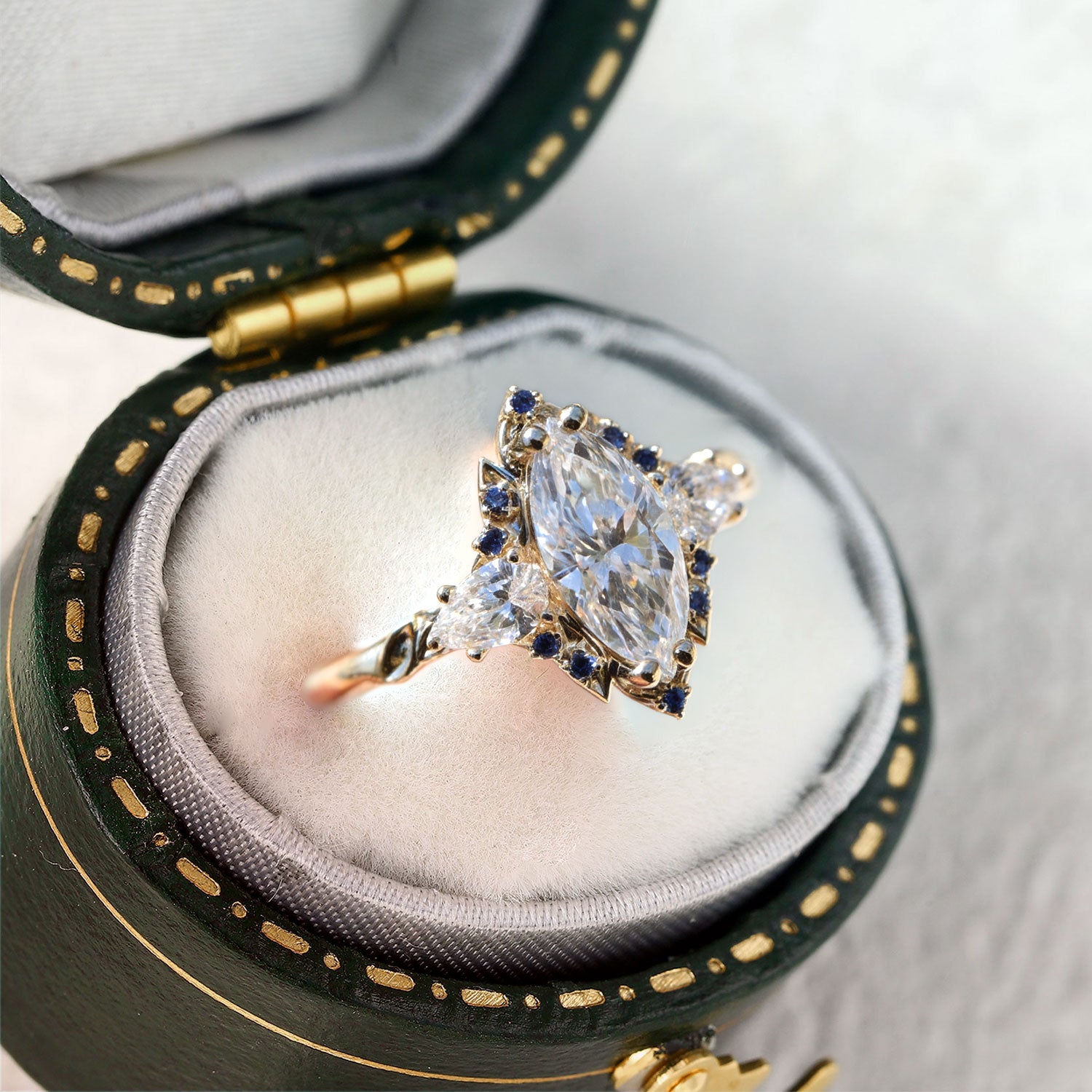Unique Briar Halo Marquise Moissanite Engagement Ring