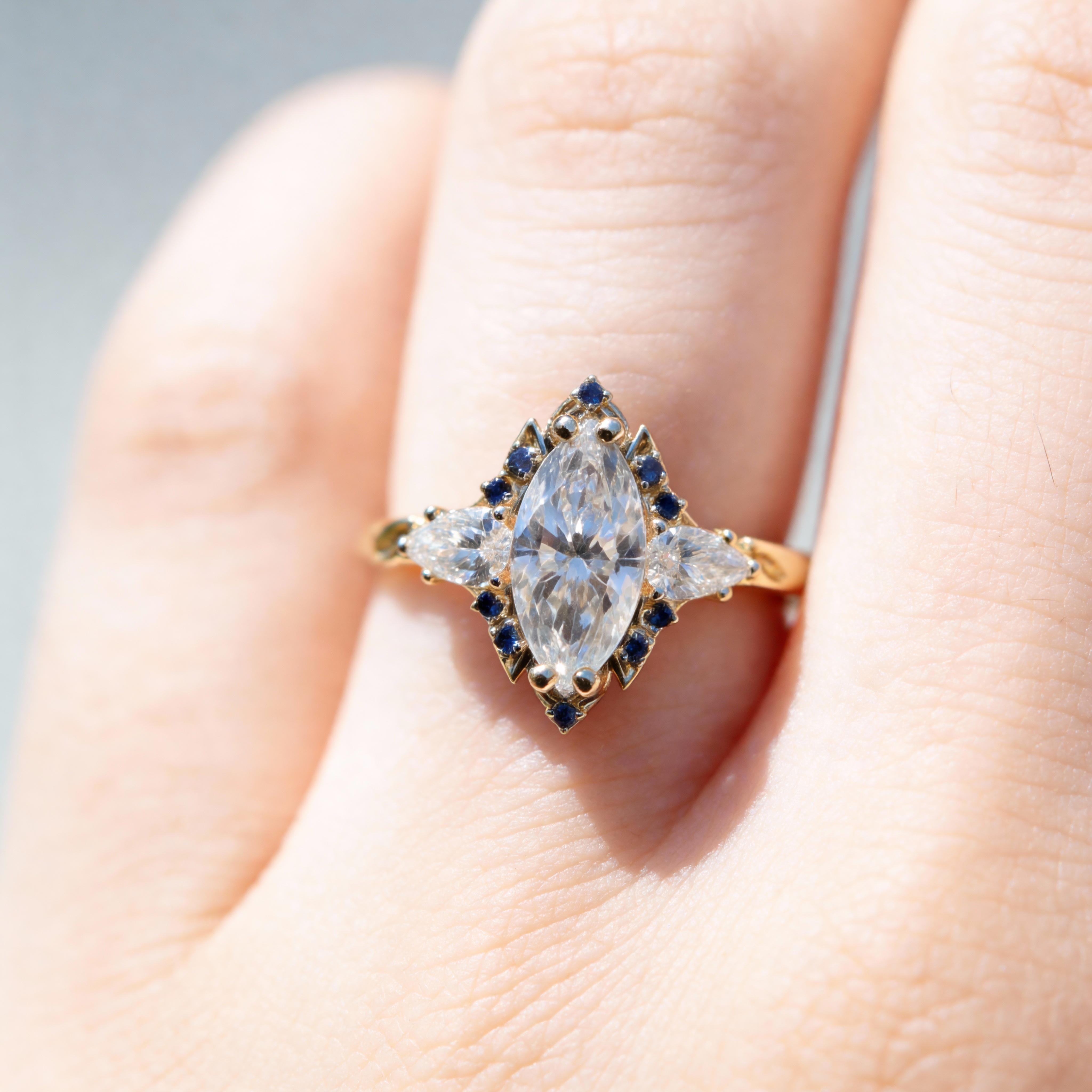 Side stones: Moissanite&Lab Sapphire