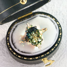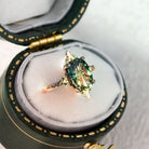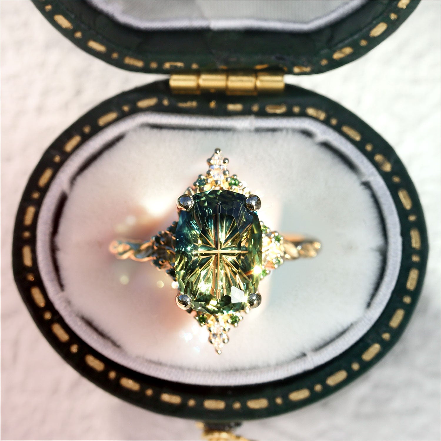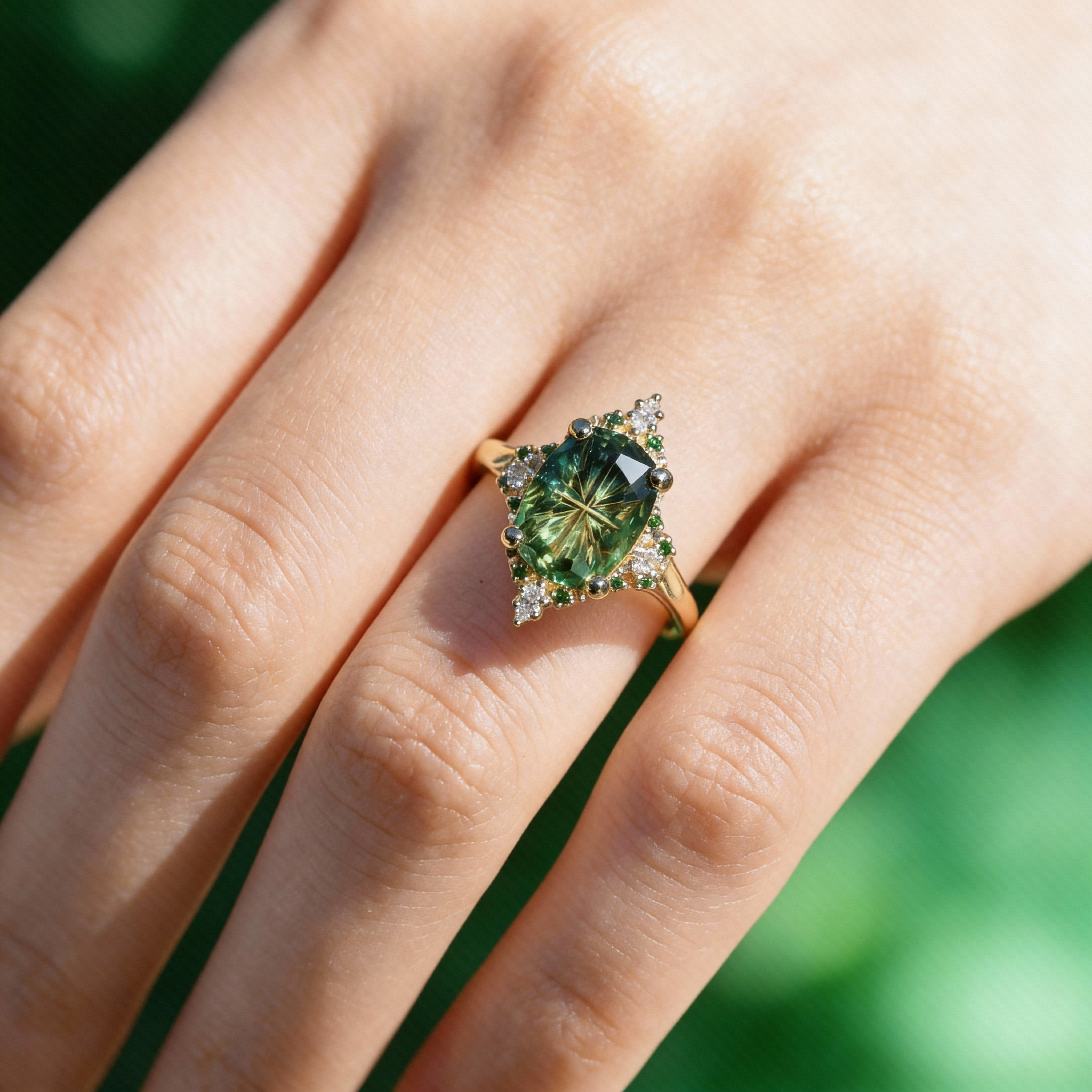 Unique Enchanted Starbrite Cut Oval Green Lab Sapphire Engagement Ring