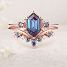 Unique Cluster Hexagon Cut Alexandrite Seven Stone Gemstone Ring Set