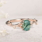 Unique Oval Moss Agate Engagement Ring Solitaire Branch Shape Engagement Ring Promise Ring