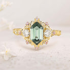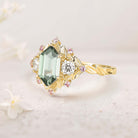 Unique Long Hexagon Green Sapphire Cluster Wedding Ring Promise Ring For Women