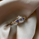 Customize your own Vintage Briar Rose Three Stone Emerald cut Moissanite and Sapphire Ring