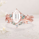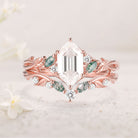 Unique floral engagement rings Hexagon Cut Moissanite Vine Gemstone Ring Set