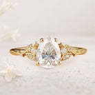 Unique Pear Moissanite Leaf And Vine Inspired Engagement Ring