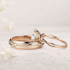 Unique Leaf Design Vine Oval Moissanite Couple’s Ring Set