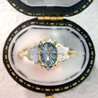Vintage Starbrite Cut Oval lighter Green Lab Sapphire and Moissanite Ring
