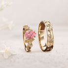 Vintage Pear Padparadscha Engagement Couples Ring Set For Wedding Gift