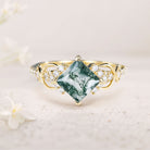 Vintage Princess Moss Agate Engagement Ring For Women